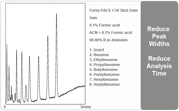 Fortis Pace columns contain any statiuonary phase from the Fortis range and are specifically designed for HTS, whether isocratic or ballistic gradients.