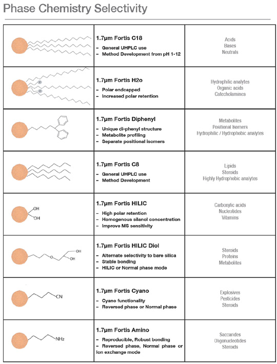 All Fortis products are available on our 1.7µ particle for use in UHPLC.